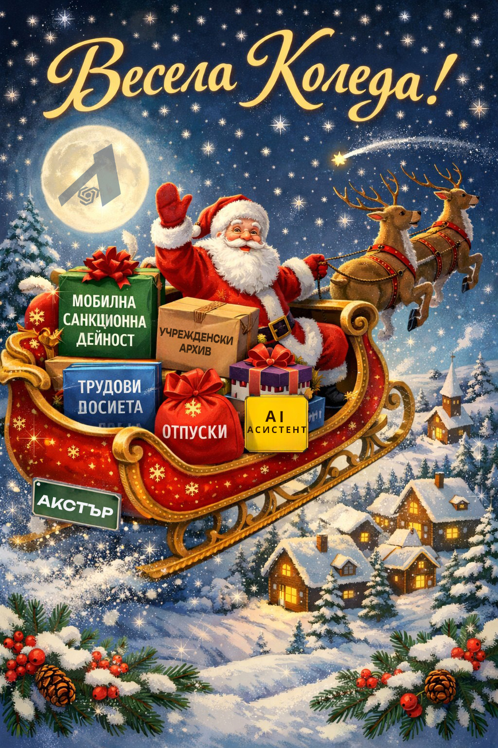 Екипът на Софтуерна група АКСТЪР Ви поздравява с настъпващите новогодишни празници и Ви пожелава крепко здраве и успех във Вашата благородна дейност.