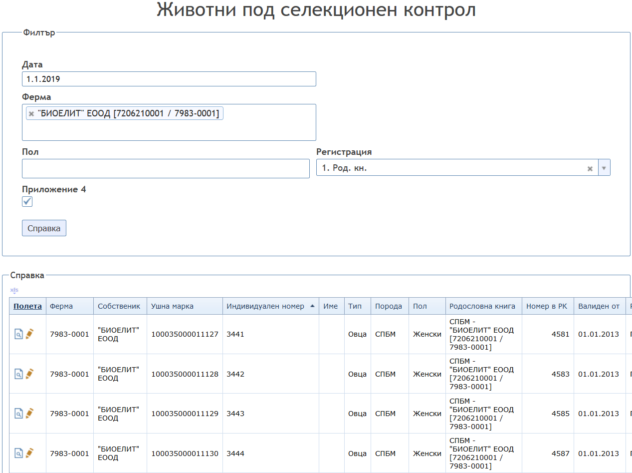 - „Статистика на разплода“ по мъжки и женски животни;