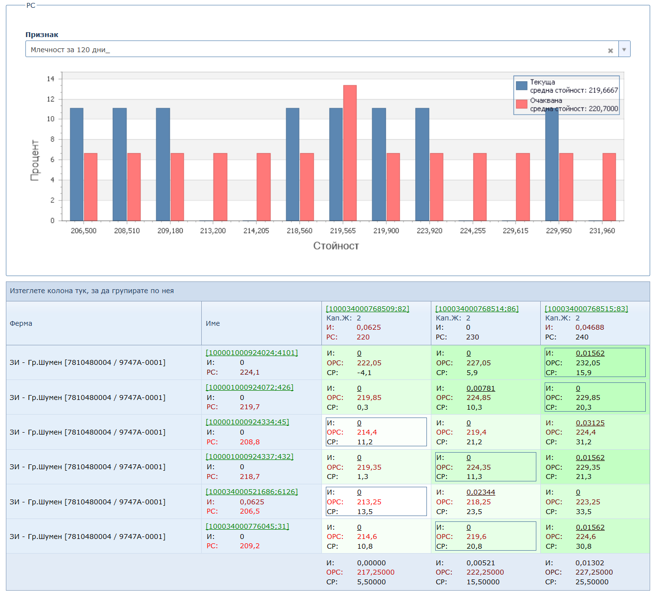- контрол на продуктивните качества, според предназначението, с възможност за изчисление на специфични индекси;